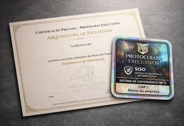 Certificação privada, selos institucionais e validação auditável dos protocolos executivos.